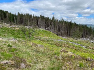 A village elder who has spent a lot of time working on estates tried to convince me that conifer plantations are the best route to creating broadleaf woodland and it is true that once woodland of any type is established, there are legal restrictions preventing it being turned back into open land. However, the conifers we have here in Morvern are problematic for native woodland. They spread from the areas they’ve been planted in and become invasive. As non-native trees, the pests and pathogens that would usually limit their growth aren’t present and so native trees struggle to compete – that is until one pathogen appears and wipes them all out.